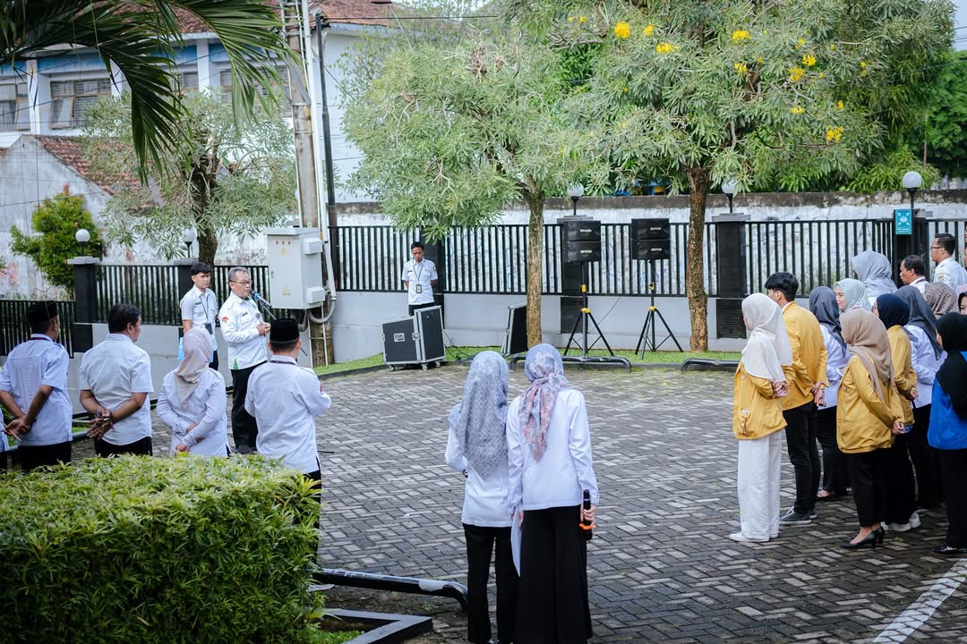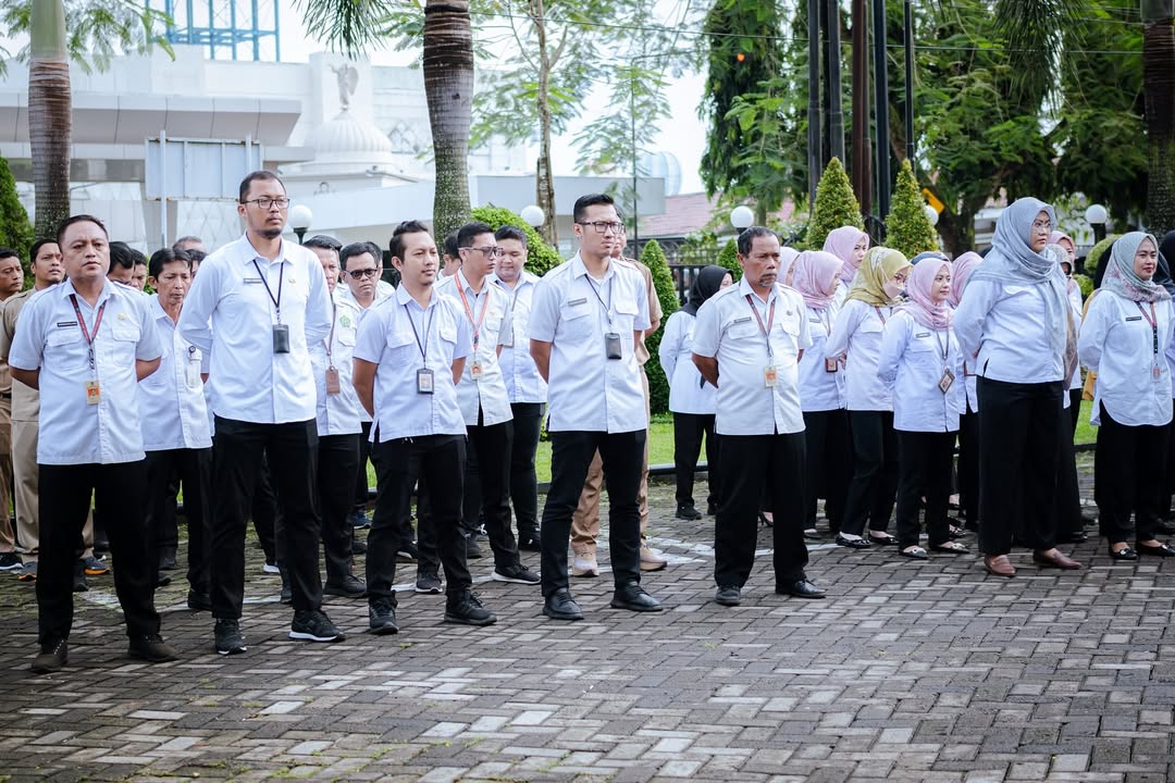 menggelar apel pagi bersama. Apel tersebut dipimpin oleh Kepala Kantor Bapak